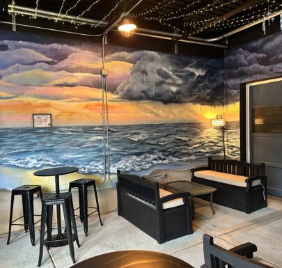 During the summer of 2025, I painted three walls of the beautiful beer garden of the new Lake Effect Brewery at 3074 N. Milwaukee Ave in Chicago. The owner wanted all the "tempers" of Lake Michigan inside and out. Lake Effect Beer Garden Lake Effect Beer Garden Lake Effect Front