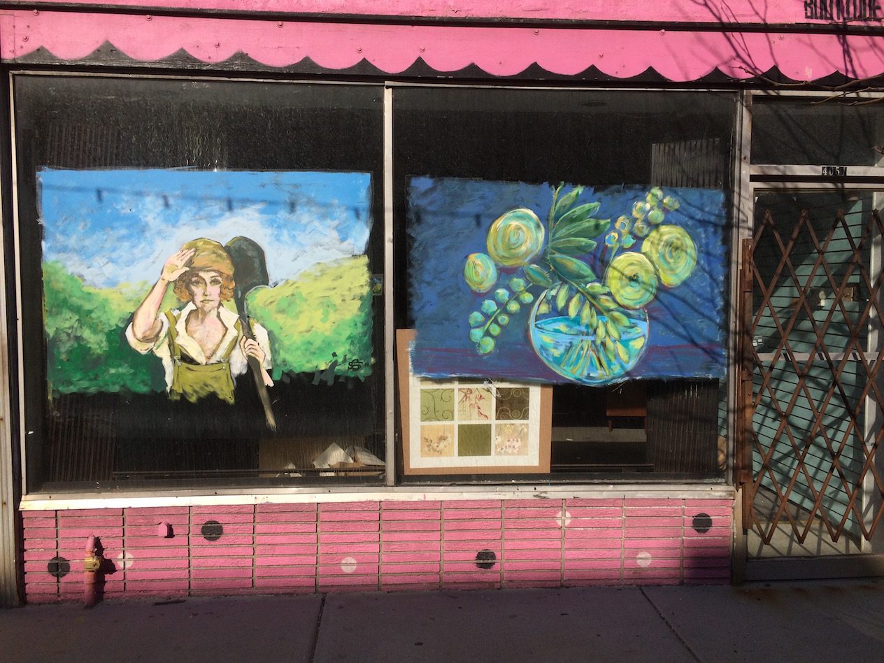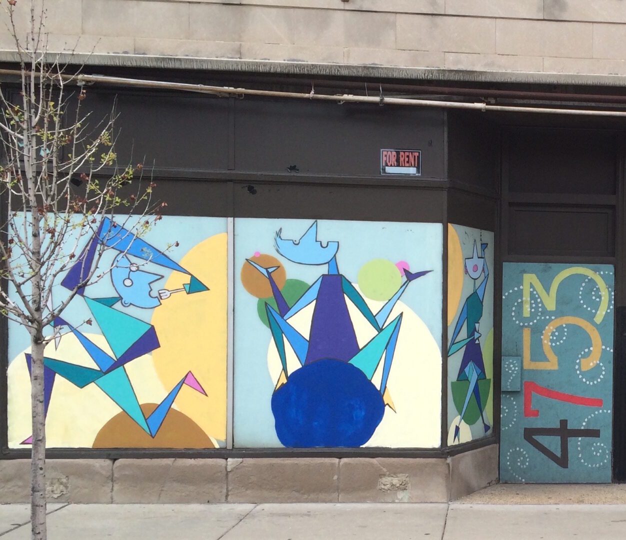 2024 Challenge by the Art Institute of Chicago was to honor Georgia O’Keefe’s New York series by creating an original storefront mural. The public was then invited to vote on windows across the city. My “City in a Garden” won the Curator’s Award for first place. While it lasts the temporary mural can be seen MARIE’S PIZZA AND LIQUORS @4129 W Lawrence, Chicago, Il 60630. -A huge thank you for PEBA (Pulaski Elston Business Association for financing)